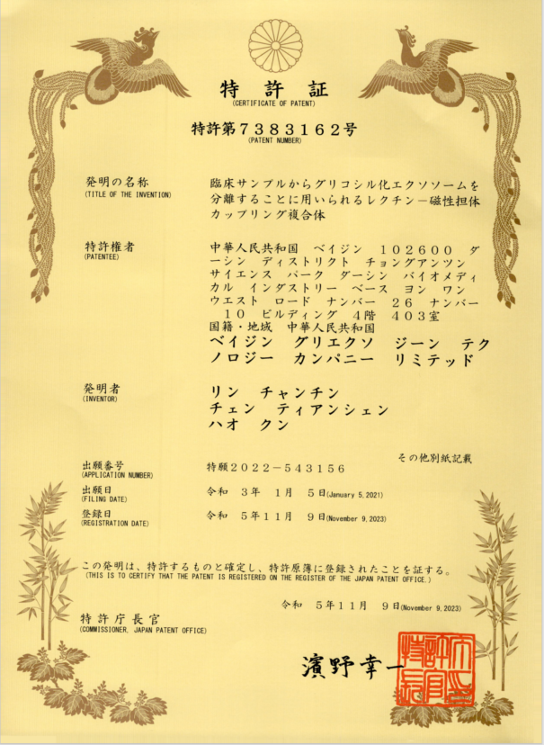 近日,熱景生物自主研發(fā)的糖鏈外泌體技術(shù)GIyExo一Capture平臺(tái)通過(guò)PCT途徑獲得日本發(fā)明專利授權(quán),標(biāo)志著糖基化外泌體進(jìn)入國(guó)際臨床診斷領(lǐng)域又邁出了具有里程碑意義的重要一步。