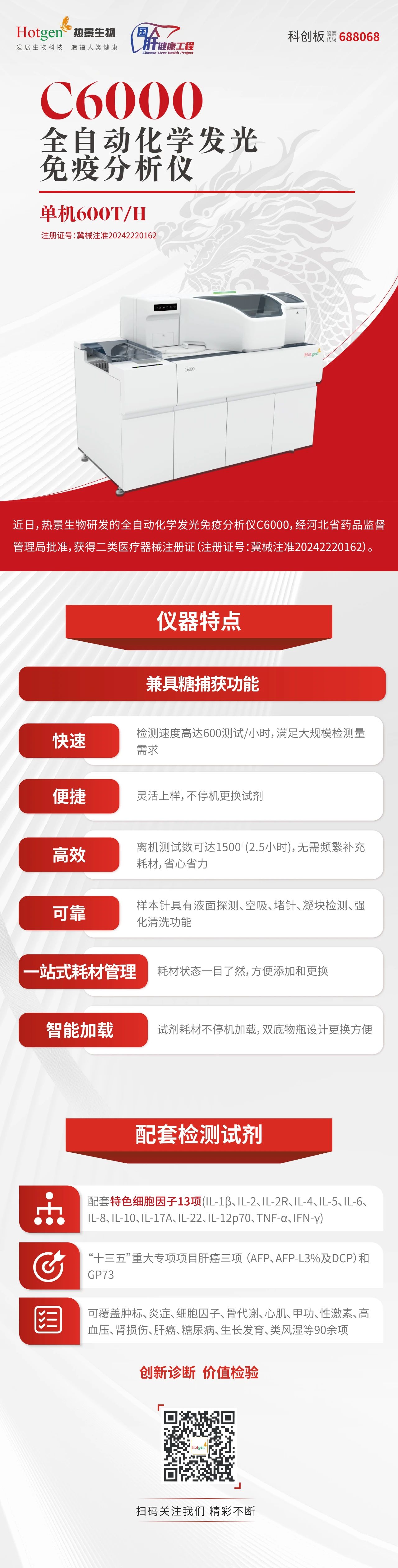 600T/H!熱景生物超高速全自動(dòng)化學(xué)發(fā)光免疫分析儀C6000獲批上市
