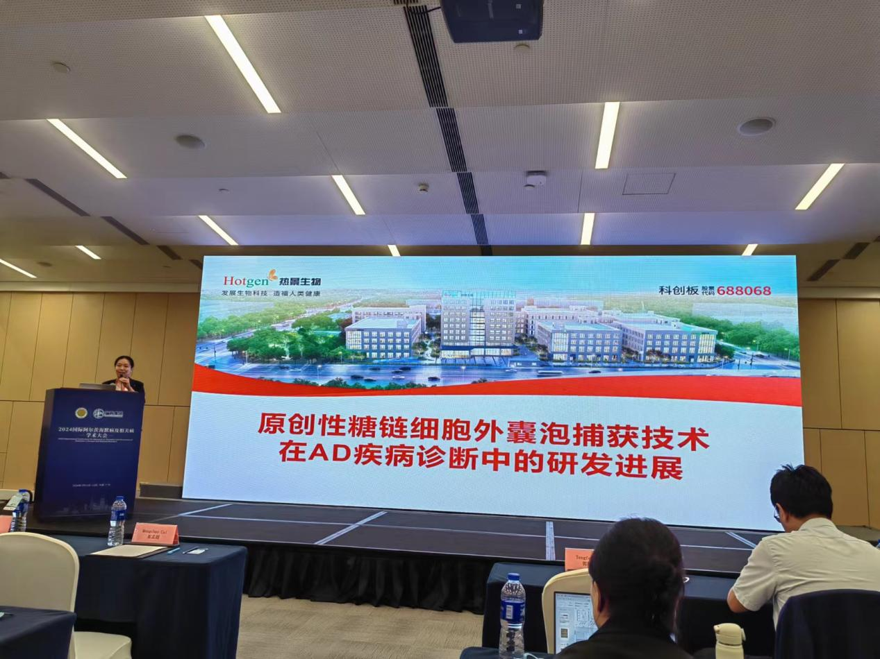 在分論壇,許立達(dá)研究員作了“原創(chuàng)性糖鏈細(xì)胞外囊泡捕獲技術(shù)在AD疾病診斷中的研發(fā)進(jìn)展”主題報(bào)告,詳細(xì)介紹了熱景生物原創(chuàng)的糖鏈外泌體捕獲技術(shù),以及在AD、肝癌、胃癌等眾多領(lǐng)域的研究進(jìn)展,獲得在場人員的高度認(rèn)可。