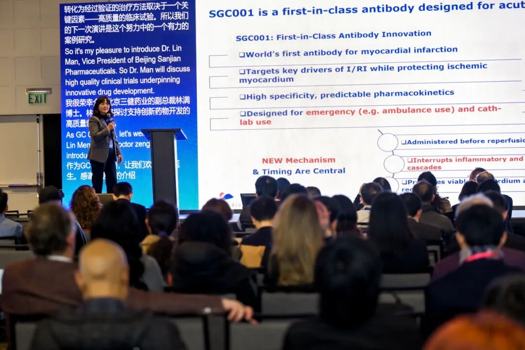 當(dāng)?shù)貢r間 2026 年 1 月 12 日,全球生物醫(yī)藥領(lǐng)域的 “風(fēng)向標(biāo)”—— 第 44 屆摩根大通醫(yī)療健康大會(J.P. Morgan Healthcare Conference)在美國舊金山盛大召開。舜景醫(yī)藥副總經(jīng)理孟玲博士應(yīng)邀出席大會并重磅宣布:全球首創(chuàng)針對急性心肌梗死的抗體治療藥物 SGC001 正式啟動Ⅱ期臨床試驗。該藥物憑借突破性的治療機制、精準(zhǔn)的臨床設(shè)計以及Ⅰ期試驗中展現(xiàn)的優(yōu)異數(shù)據(jù),一經(jīng)公布便引發(fā)與會投資者與行業(yè)同仁的關(guān)注與討論。